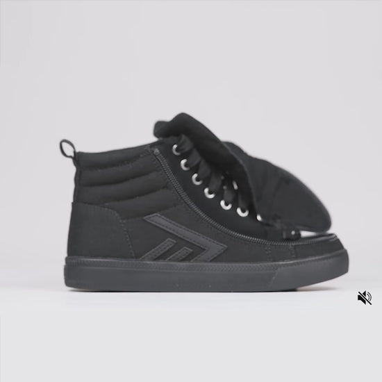 Inspired by a core-skate look, the Black to Floor BILLY CS High Tops are sure to please everyone. With a classic white and black design remaining true to current style and offering easy accessibility thanks to the wrap around zipper.
