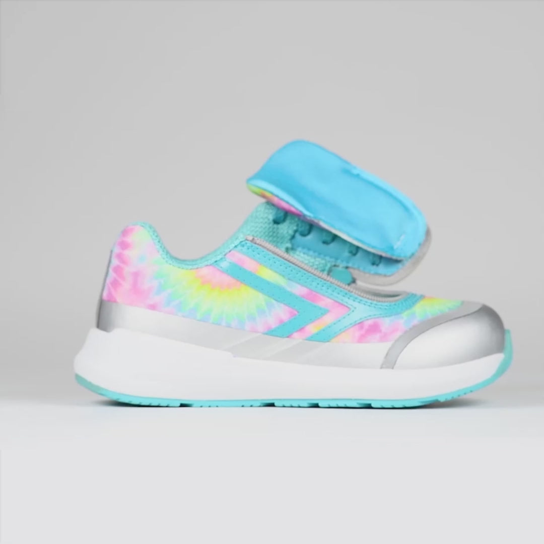 Get in! to innovation. Created in collaboration with Boston Orthotics & Prosthetics, the Rainbow Tie Dye BILLY Goat AFO-friendly shoes are sure to provide the functional solution you've been looking for. Along with the short cover zip for easy on and off, the Goat is distinguished by the following features, making it our most AFO-friendly solution: