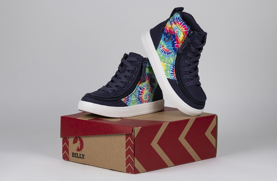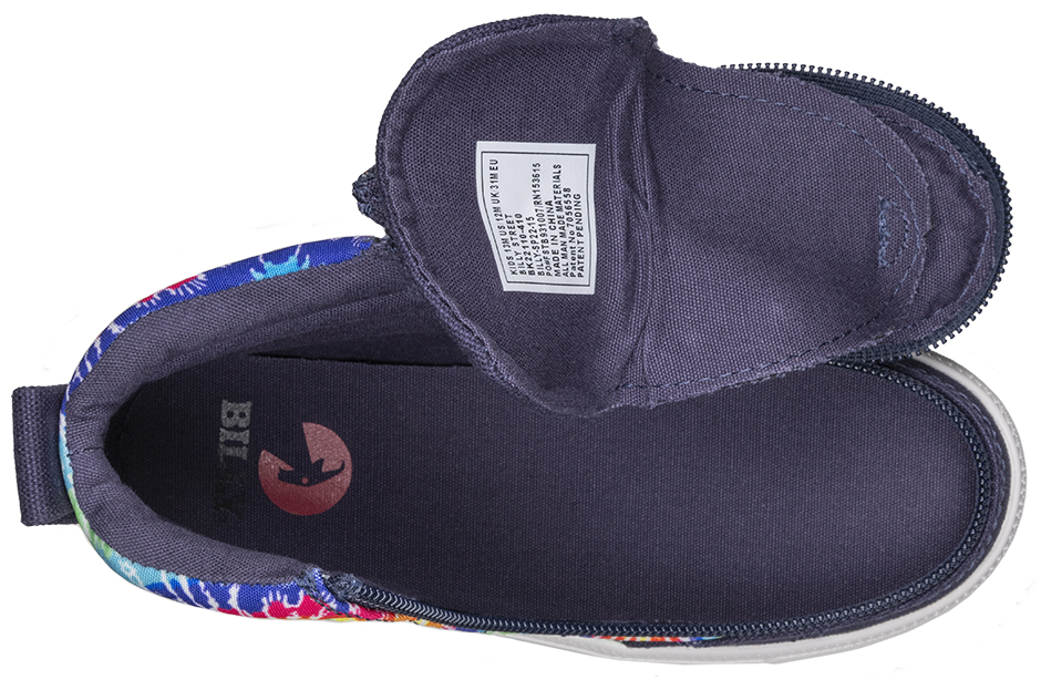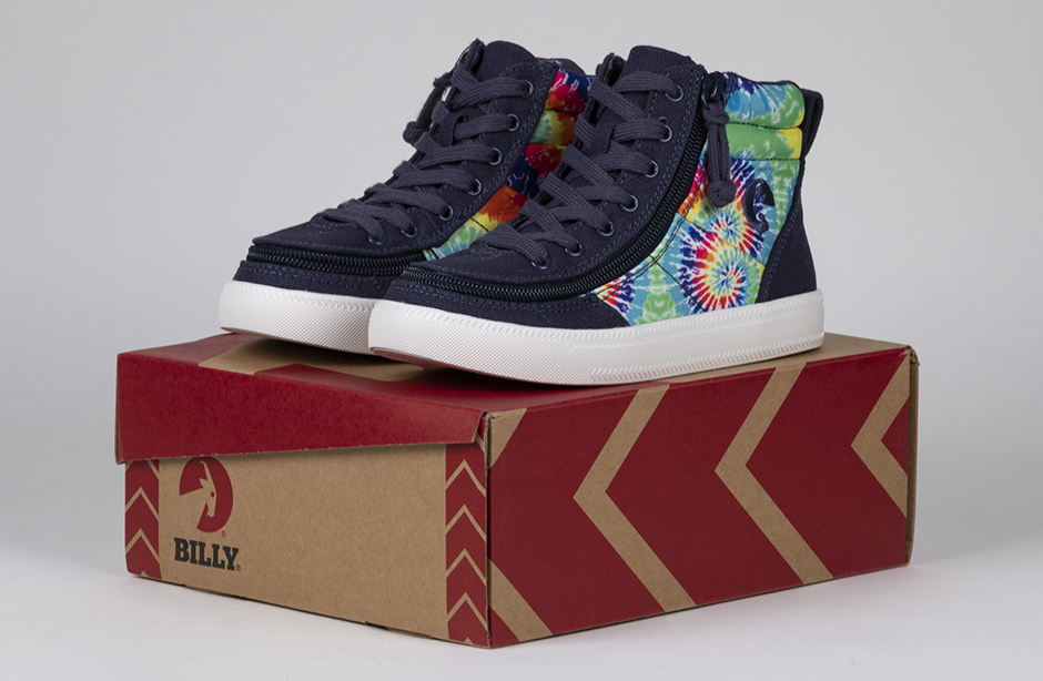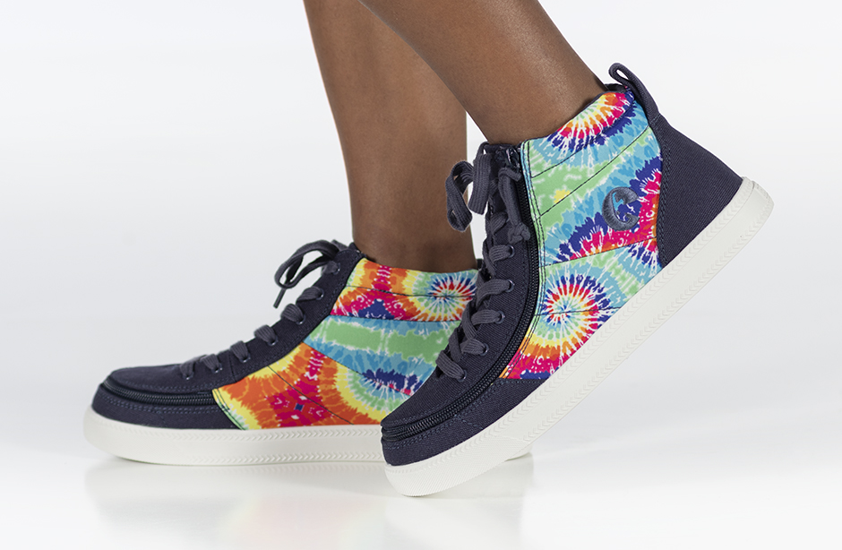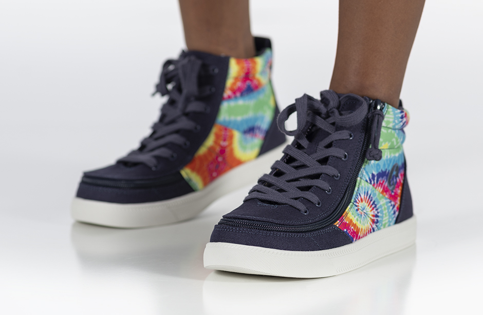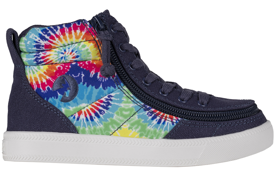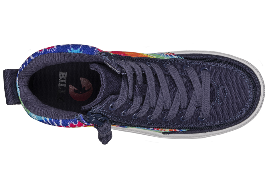 Put some pop into your day with a pair of Navy Tie Dye BILLY Street High Tops. These colorful kicks are sure to turn heads and brighten every moment. And with the wraparound zipper, donning and doffing has never been easier. Flip. Zip. Go!