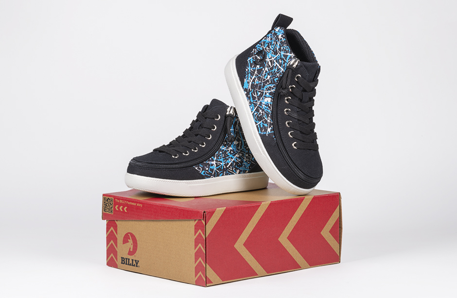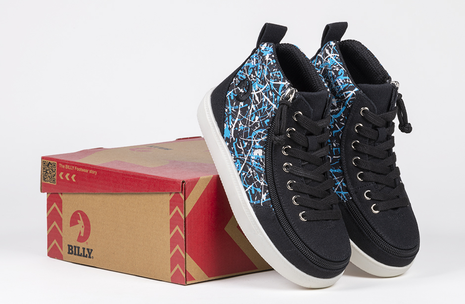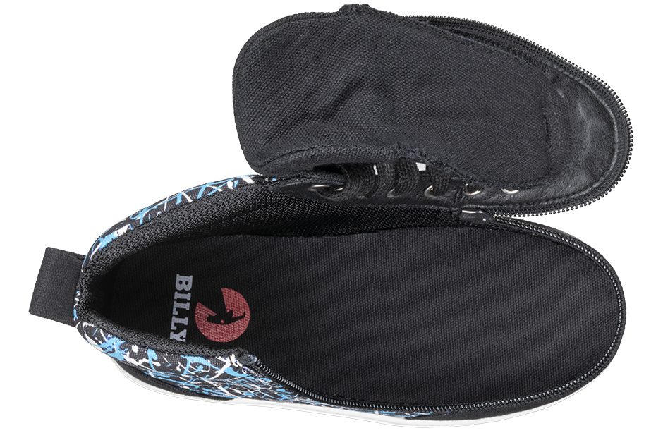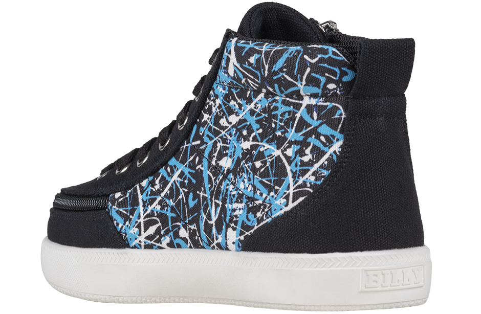 Your kid will be lookin' good in these classic BILLY® Footwear Kids Classic DR II High Tops! Adorned with unique graffiti on the side panel and featuring a wrap-around zippered closure and functional lace panel, these sassy black sneakers will make a statement wherever they go. Plus, the canvas upper, knitted fabric lining, and memory foam footbed keep 'em comfy all day long!